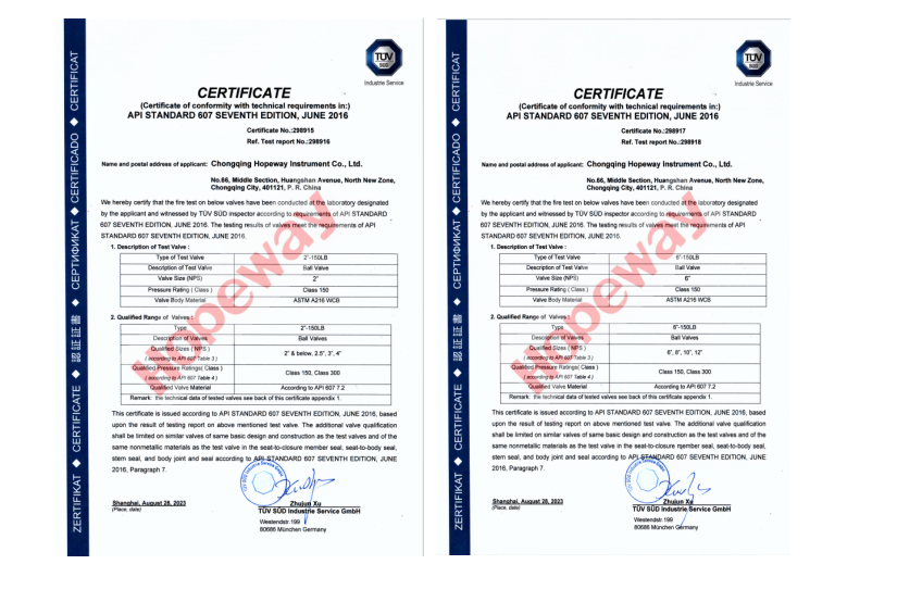 近日,海王儀表球閥系列產品通過TUV耐火再認證。